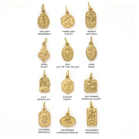 Encantos de flores de nacimiento en relieve | Colgantes de flor de 12 meses de acero inoxidable chapado en oro PVD de 18 quilates para la fabricación de joyas DIY
