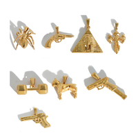 Poder dorado | Colgantes de acero inoxidable chapados en oro PVD de 18 quilates | Encantos de pistola, Araña, perro, pirámide y mancuernas para la fabricación de joyas