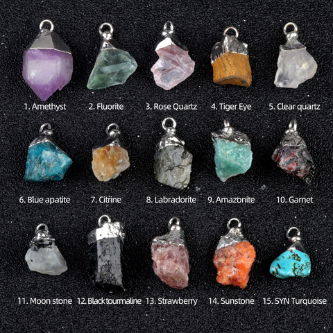 Colgantes de pepitas de piedras preciosas crudas | Surtido de colores mezclados, dijes de piedra natural irregular áspera con tapa de plata para la fabricación de joyas DIY