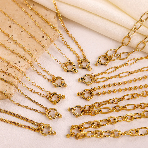 Collar con cierre de mosquetón redondo | Cadena de acero inoxidable chapada en oro PVD de 18K para hacer joyas DIY | Impermeable, hipoalergénico