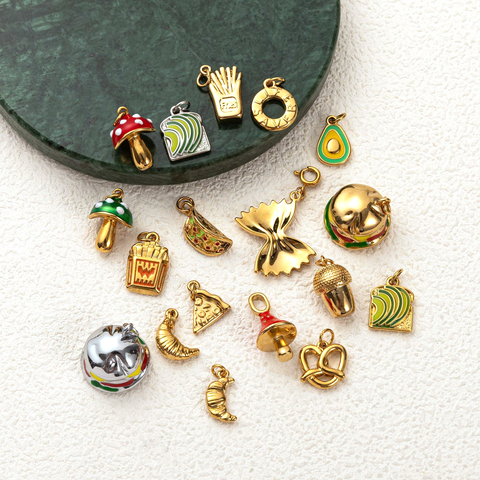 שפע & הון | מזל | מזל שגשוג בר מזל זהב 18k מצופה זהב פירות נירוסטה מזון תליונים להכנת תכשיטים