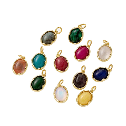 自然石诞生石魅力 | 18k镀金黄铜椭圆形每月宝石诞生石吊坠DIY珠宝制作